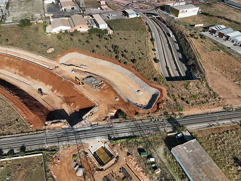 Adif sigue desarrollando las obras de plataforma de la nueva infraestructura, que se dividen en dos tramos. En el tramo I se ha finalizado con éxito el empuje de un cajón de hormigón ejecutado in situ bajo el Corredor Mediterráneo. Esta actuación permite dar continuidad al trazado del ramal sin afectar al servicio ferroviario existente, constituyendo un hito clave.