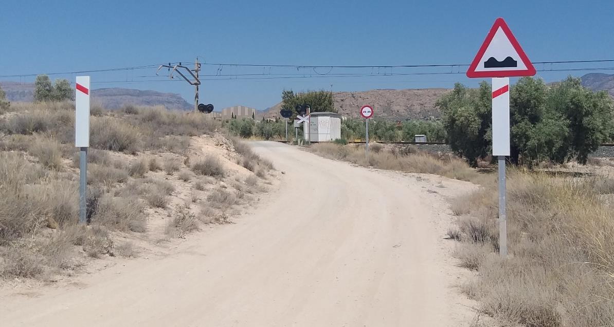 Las actuaciones proyectadas comprenden la supresión del paso a nivel, situado en el punto kilométrico 440/484, mediante la construcción de un nuevo vial a unos 20 metros, que contará con un paso superior formado por 3 vanos para salvar la doble vía ferroviaria en servicio con dos luces de 14 m y una de 18 m. Este vial permitirá la continuación del Camino del Río Segura.