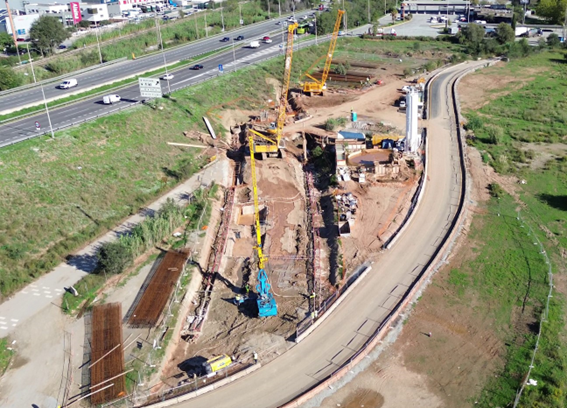 Por su parte, en la zona del río Ripoll, entre el pozo de ataque de la tuneladora de la Línea de Alta Velocidad y la autopista C-33, se han implantado instalaciones auxiliares para la ejecución del tramo entre pantallas de este sector.