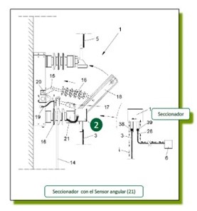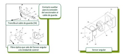 El sensor de tensión también está conectado al seccionador (1) estableciendo un bucle por el que circula continuamente corriente. Si dejara de circular corriente el sensor de tensión se apaga proporcionando un valor 0 a la unidad de control generando una señal de avería.