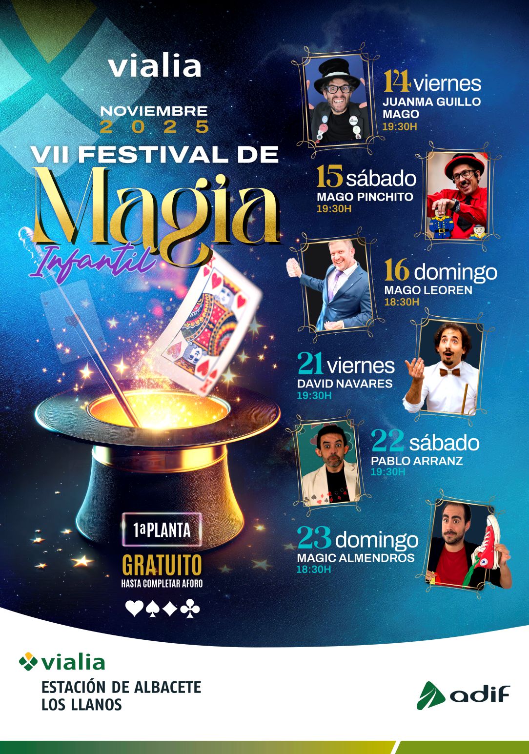 La estación de Adif vialia ALBACETE LOS LLANOS acogerá durante este fin de semana y el próximo una nueva edición del ‘Festival de Magia Infantil Vialia Albacete’, que ofrece un amplio y variado programa de actuaciones con magos de reconocido recorrido en el ámbito familiar.