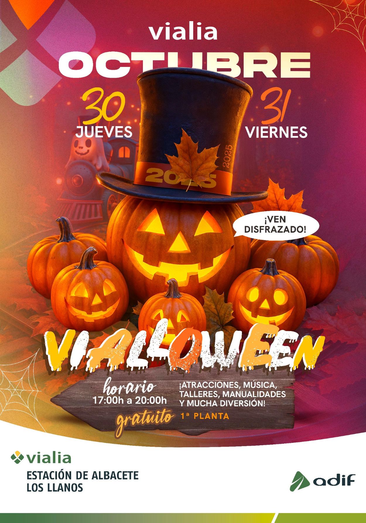 La estación de Adif vialia ESTACIÓN DE ALBACETE LOS LLANOS iniciará la temporada de actividades de otoño con la tradicional celebración de Halloween. Durante los días 30 y 31 de octubre, en horario de 17.00 a 20.00 horas, tendrán lugar sendas fiestas infantiles de carácter gratuito, bautizadas como ‘Vialloween’.