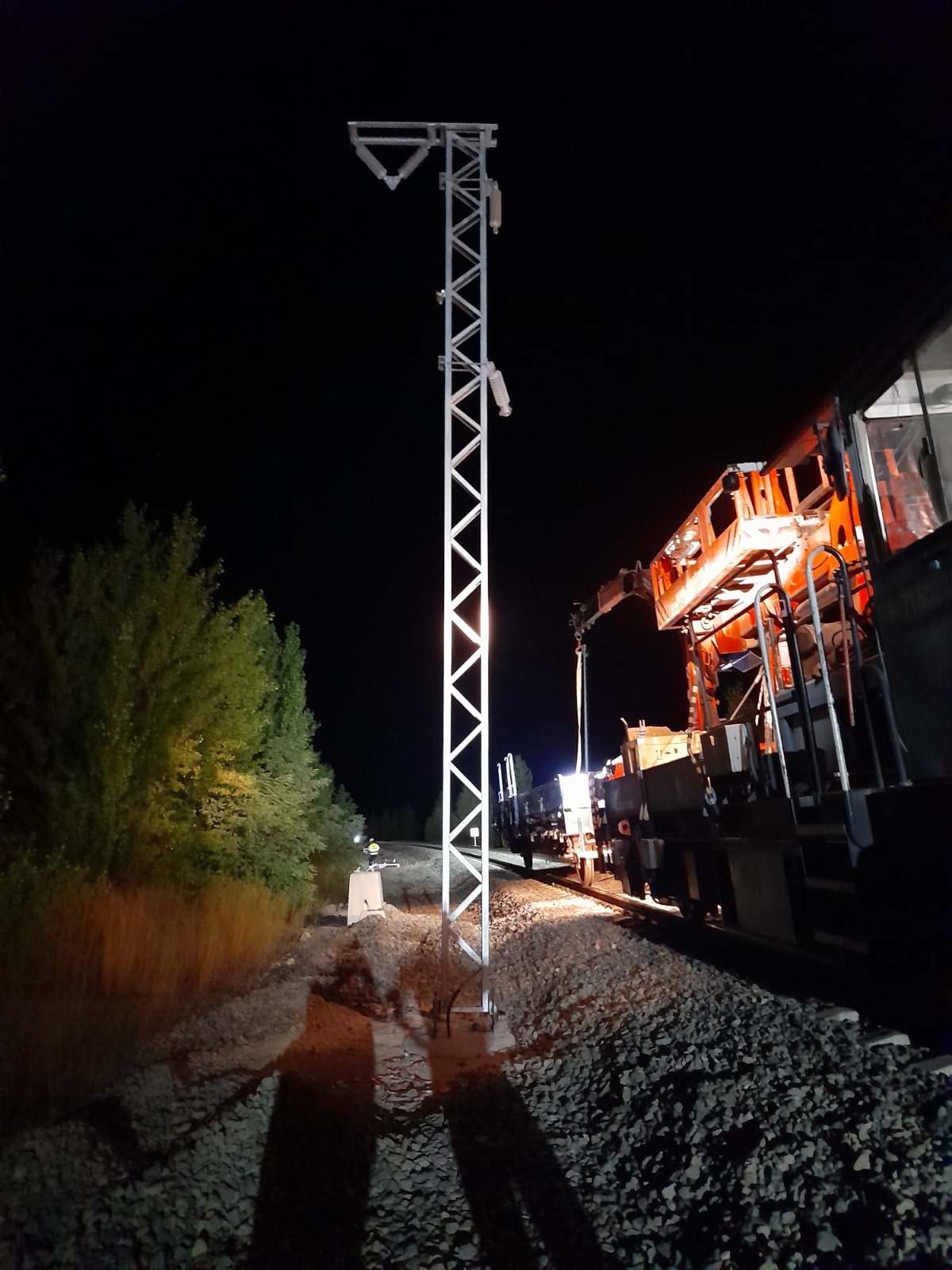 Adif sigue impulsando actuaciones enmarcadas en el Plan Director de la línea Zaragoza-Teruel-Sagunt, concretamente, su electrificación, con el inicio de la colocación de los postes y pórticos de la catenaria.