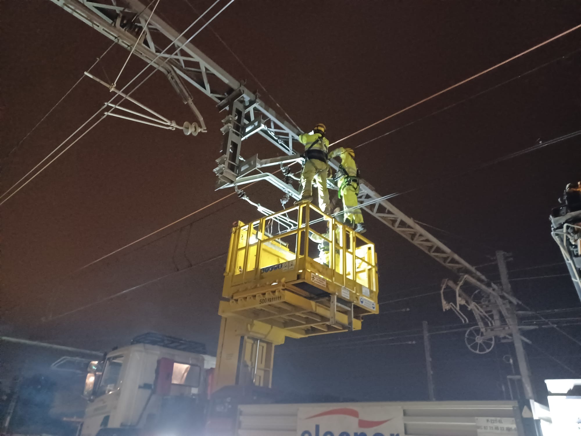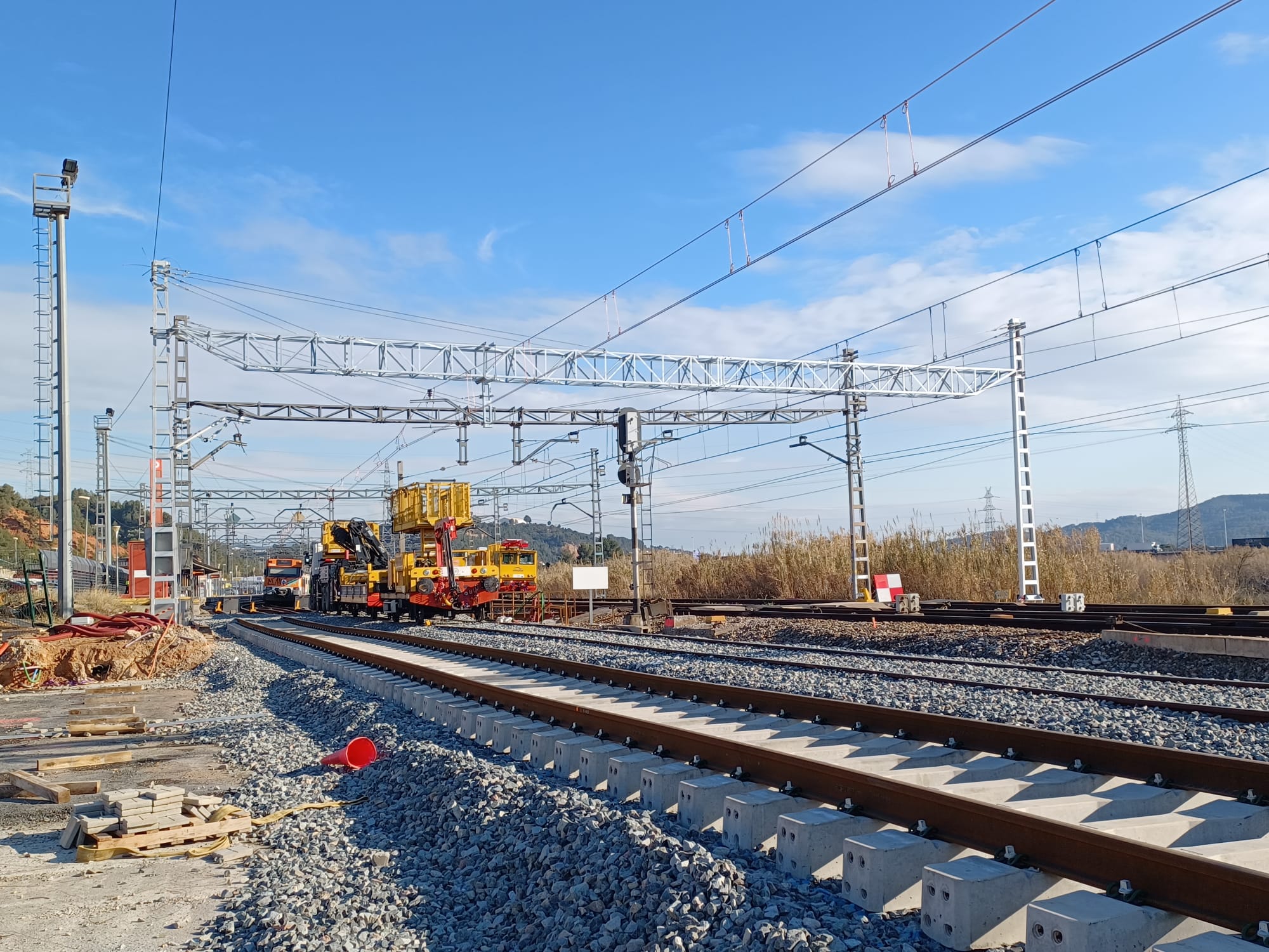 En los últimos meses se han realizado los trabajos previos necesarios: la rehabilitación de una obra de drenaje transversal, el montaje de unos 650 m de la nueva vía 2 apta para ancho mixto y otras operaciones para la instalación de nueva catenaria, como la colocación de 31 nuevos pórticos y el tendido del nuevo hilo de contacto.