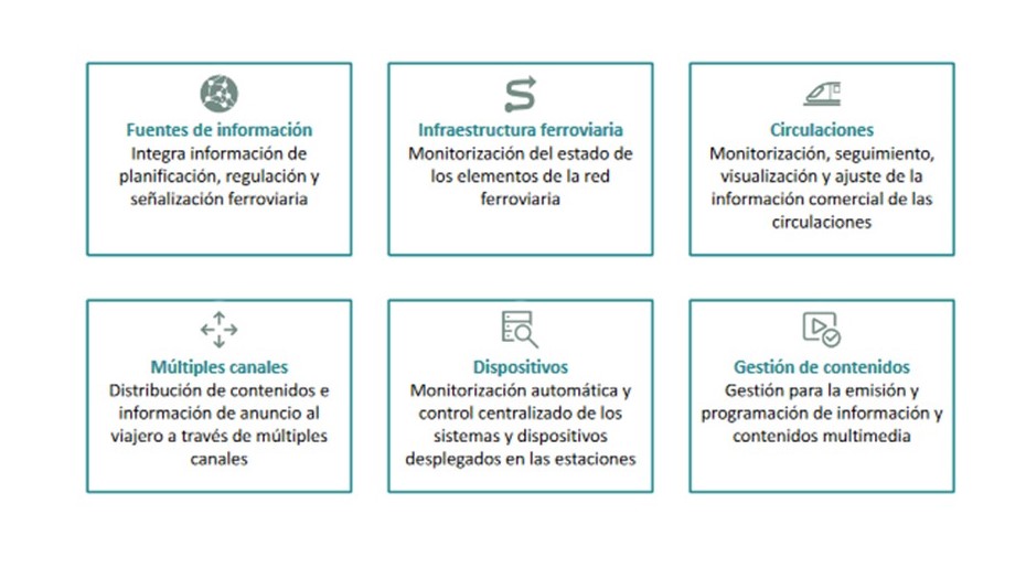 Permet, de manera senzilla, la gestió de la informació de trànsit ferroviari, el monitoratge dels sistemes d'anunci i els sistemes de control de l'estació, així com controlar la distribució de la informació al viatger. Això permet augmentar la qualitat del servei oferit i la qualitat de la informació proporcionada en tota la xarxa d'estacions.