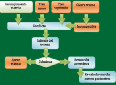 Graphic of electronic regulation of Adif trains (software).
