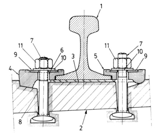 Oro har, pieza horiek errailaren patinaren bi aldeetan jartzen dira, erraila trabesari eusteko, gabila hariztatuen edo zeharkatzen dituzten torloju eta azkoinen bidez, eta, aldez aurretik, altzairuzko plaka elastiko handiak jartzen dira, pieza isolatzaile horien goiko aldean konfiguratutako kaxatze baten gainean.