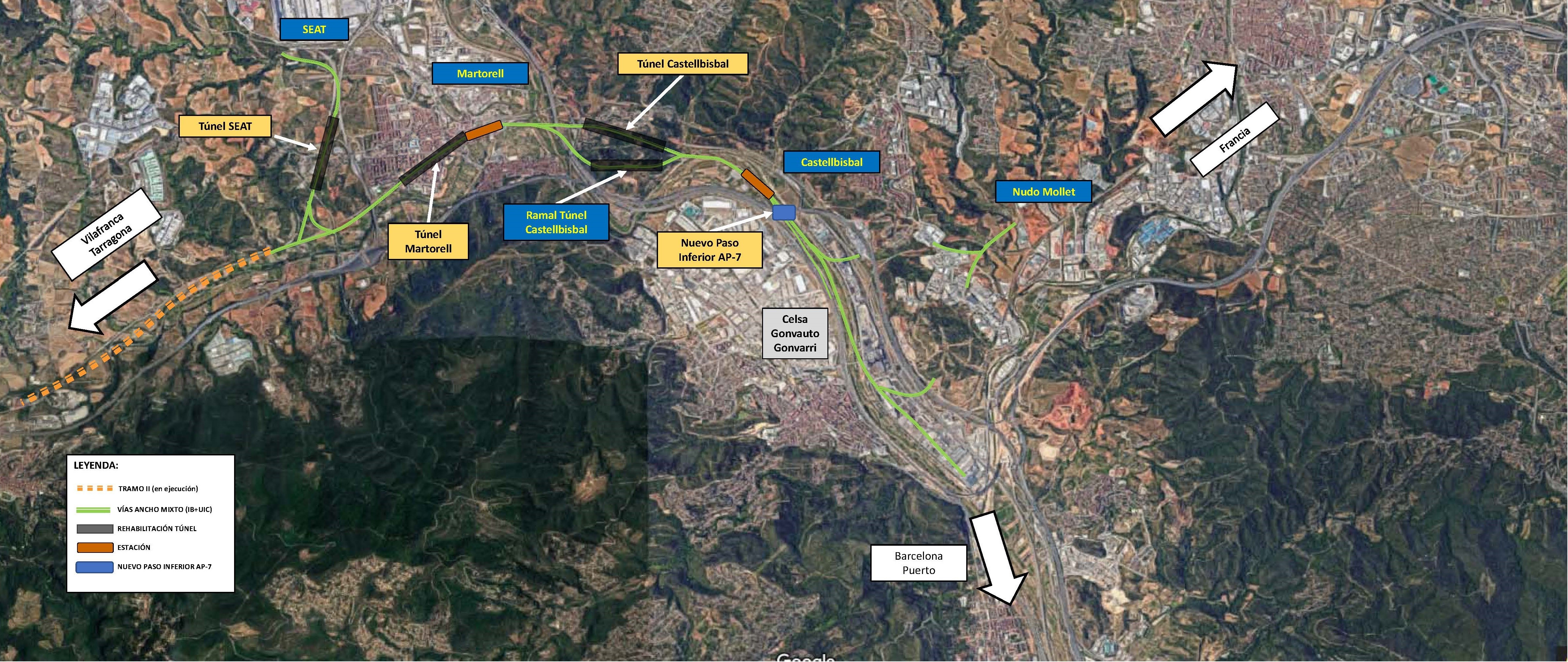 Actualmente, existe un paso con tres vías en ancho convencional que da servicio a la línea ferroviaria Sant Vicenç de Calders - Vilafranca del Penedès - L’Hospitalet de Llobregat. Para adecuarlo a los requerimientos del ancho internacional/estándar, se desmontará una de las vías y se realizarán las adaptaciones necesarias para su operatividad en ambos anchos.