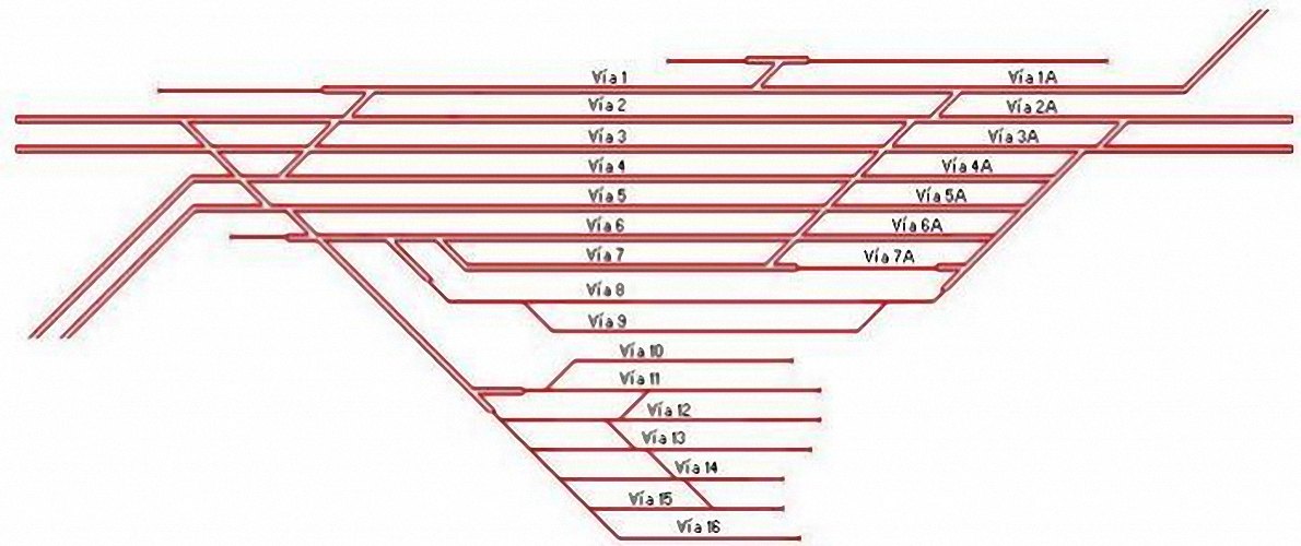 | Nombre | Longitud útil orientativa (m) | Electrificado | Enclavamiento |